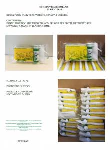 Un pratico set contenente lavapiatti a mano, spugna con fibra e panno multiuso.